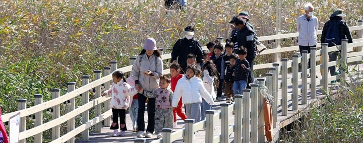 [중앙통신뉴스]제10회 강진만 춤추는 갈대축제가 강진만생태공원에서 열리고 있는 가운데 동심으로 물들였다. 28일 축제장을 찾은 어린이들이 다양한 체험 등을 즐기며 축제장 곳곳에서 즐거운 한 때를 보내고 있다. [강진군 제공]