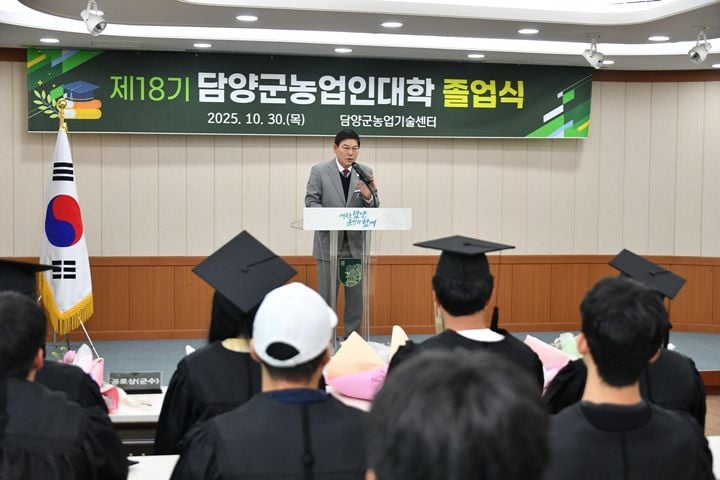 정철원 담양군수는 “졸업생 여러분 모두의 노고와 열정에 감사드린다”며 “앞으로도 현장 맞춤형 교육과 스마트농업 역량 강화에 힘써 담양 농업의 경쟁력을 높이겠다”고 밝혔다.
