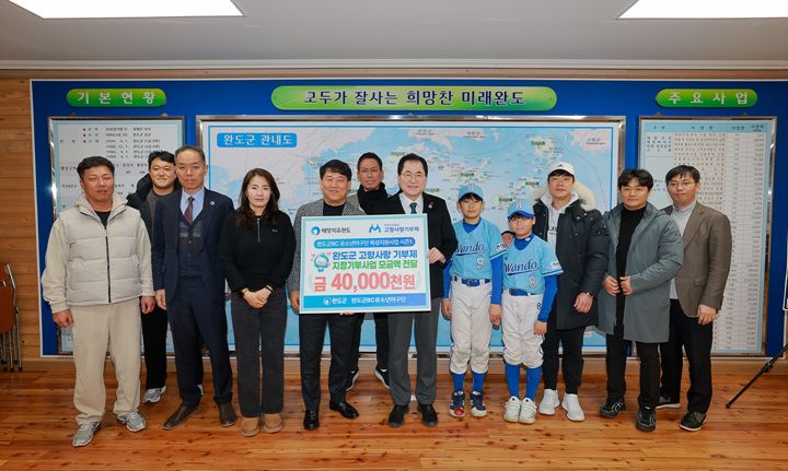 [중앙통신뉴스│정책뉴스]완도군(군수 신우철)이 유소년 야구 발전과 지역 체육 인재 육성을 위해 의미 있는 행보를 이어갔다. 군은 최근 ‘완도군 BC유소년 야구단’ 선수와 지도진, 학부모 등 30여 명을 군청으로 초청해 ‘고향사랑기부제’ 지정 기부금 4천만 원을 전달했다.