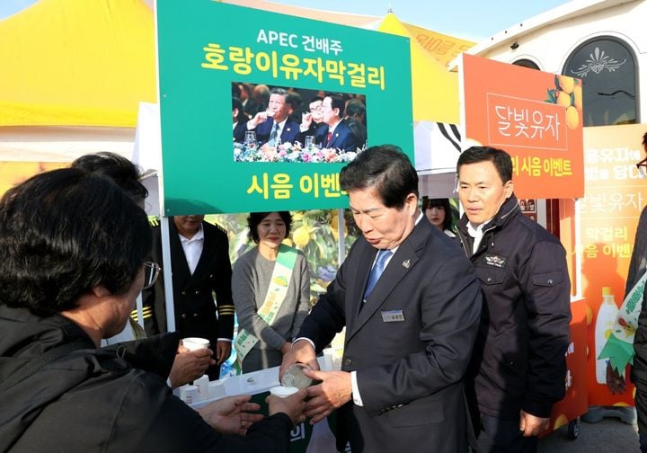 특히, 최근 APEC 정상 만찬주로 세계인의 주목을 받은 고흥 유자로 만든 호랑이유자막걸리 시음 행사에는 긴 줄이 이어졌다.