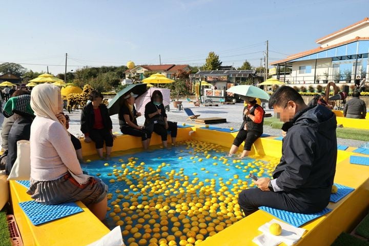 9m 높이의 대형 유자 조형물이 축제장 입구에서 가장 먼저 방문객을 반겼고, 곳곳에 설치된 황금빛 조형물은 축제장을 극적으로 밝혀줬다.