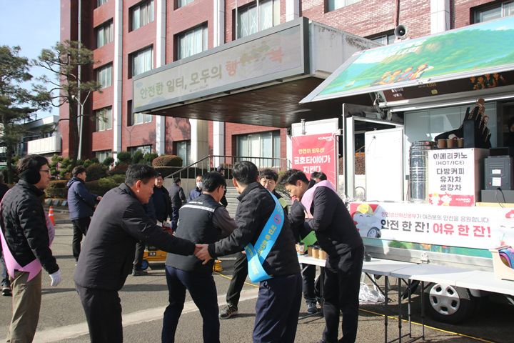 캠페인 기간 동안 커피차 앞에는 ‘안전 캠페인’, ‘여유 한 잔’ 등 메시지가 담긴 현수막이 내걸리고, 음료컵에는 안전을 주제로 한 스티커도 붙였다. 덕분에 직원들은 잠시 일손을 놓고 따뜻한 음료를 즐기며, 자연스럽게 안전에 대한 책임감을 새길 수 있었다.