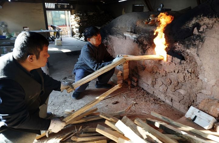 [중앙통신뉴스│정책뉴스]제54회 강진청자축제가 오는 21일 개막을 앞두고 있는 가운데 12일 전남 강진군 대구면 고려청자박물관 제2호 가마에서 도공들이 전통 방식을 그대로 재현하며 소나무 장작을 이용해 불을 지피고 있다.