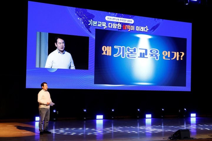 19일 광주교육연수원 대강당에서 학교장과 주요 기관장 등 약 1천 명이 참석한 가운데 열린 ‘2026 광주교육 주요업무 계획 설명회'는 올해 광주교육의 주요 성과 공유와 함께 내년 정책 추진계획을 알리는 자리로, 이정선 교육감이 직접 발표했다.