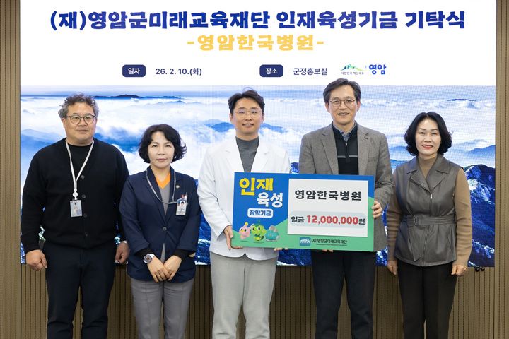 지난 10일 영암한국병원은 영암군청을 방문해 영암군미래교육재단에 '내 고장 정착 희망 장학생 사업' 장학기금 1,200만 원을 전달했다.